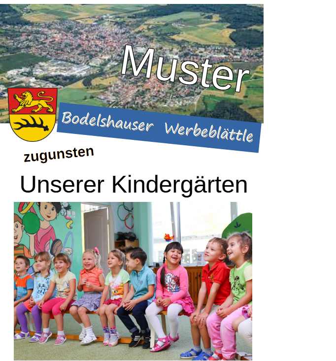 Die betreffende Kommune veröffentlich eine Broschüre auf ihrer Website und wählt dafür eine soziale Einrichtung aus (einen gemeinnützigen Verein, Kindergarten oder Schule). Dieser Institution wird auf den ersten 4-5 Seiten der Broschüre eine Beschreibung gewidmet. Auf den restlichen Seiten besteht für die örtlichen Betriebe die Gelegenheit, eine Anzeige zu schalten, d.h. sie können werben und gleichzeitig spenden. Denn die gesamten Einnahmen – abzüglich einer geringen Aufwandsentschädigung – gehen an die ausgewählte Einrichtungen. Die u.a. Beispiele zeigen, dass es einige Möglichkeiten der Gestaltung und diverse „Spendenempfänger“ gibt.